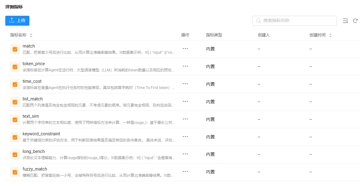 点击模型工厂-评测指标,可进行评测指标的上传。